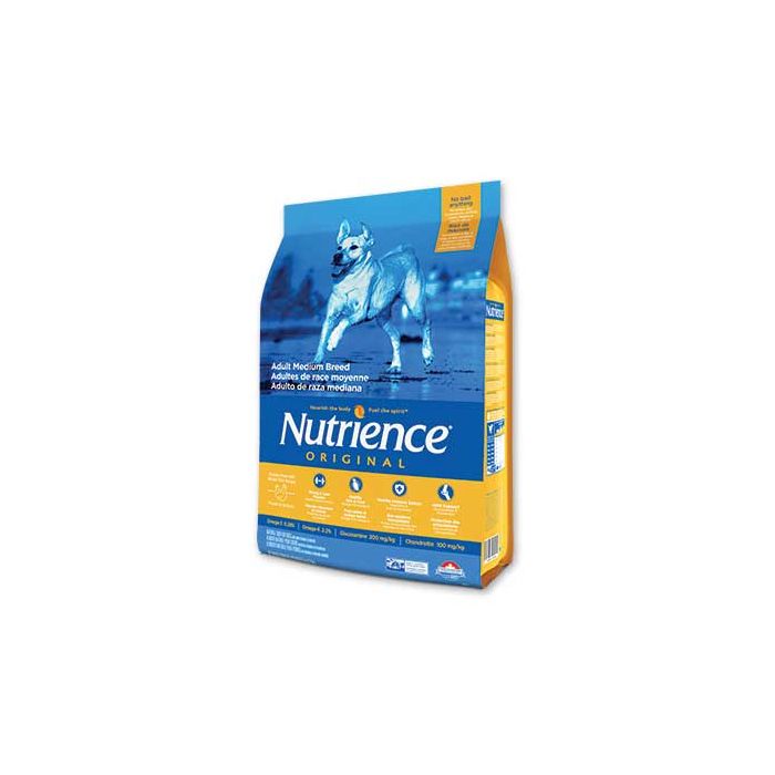 Nutrience Original Dog Adulto Medium tiene pollo como ingrediente principal el cual apoya el cuerpo fuerte y activo de su perro.