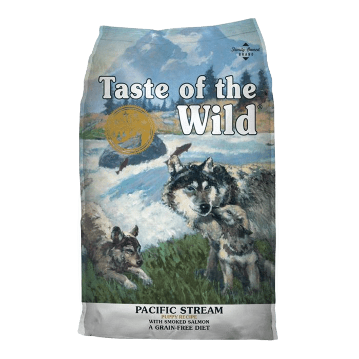 Taste of the Wild Pacific Stream Puppy, Los sabores únicos de salmón ahumado, verduras, legumbres y frutas en un tamaño pequeño de croquetas facilitan que los cachorros disfruten de los nutrientes que necesitan para la vitalidad general.